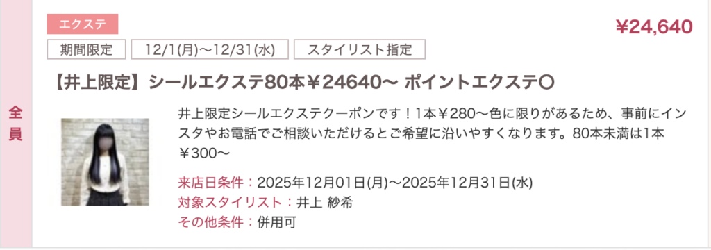 12月1日〜12月31日限定で、Shalu八王子店の井上指名限定でシールエクステを始めます💫